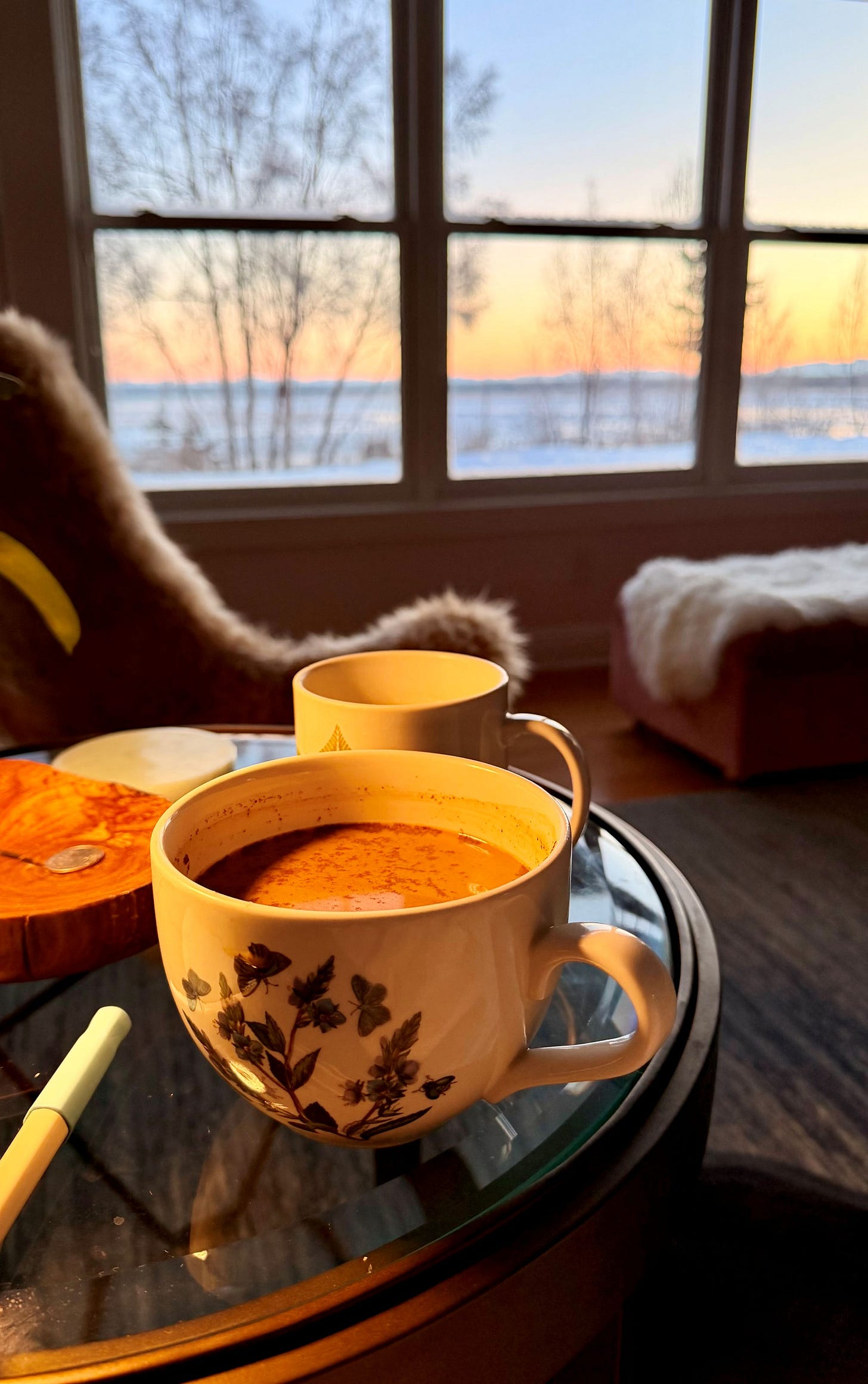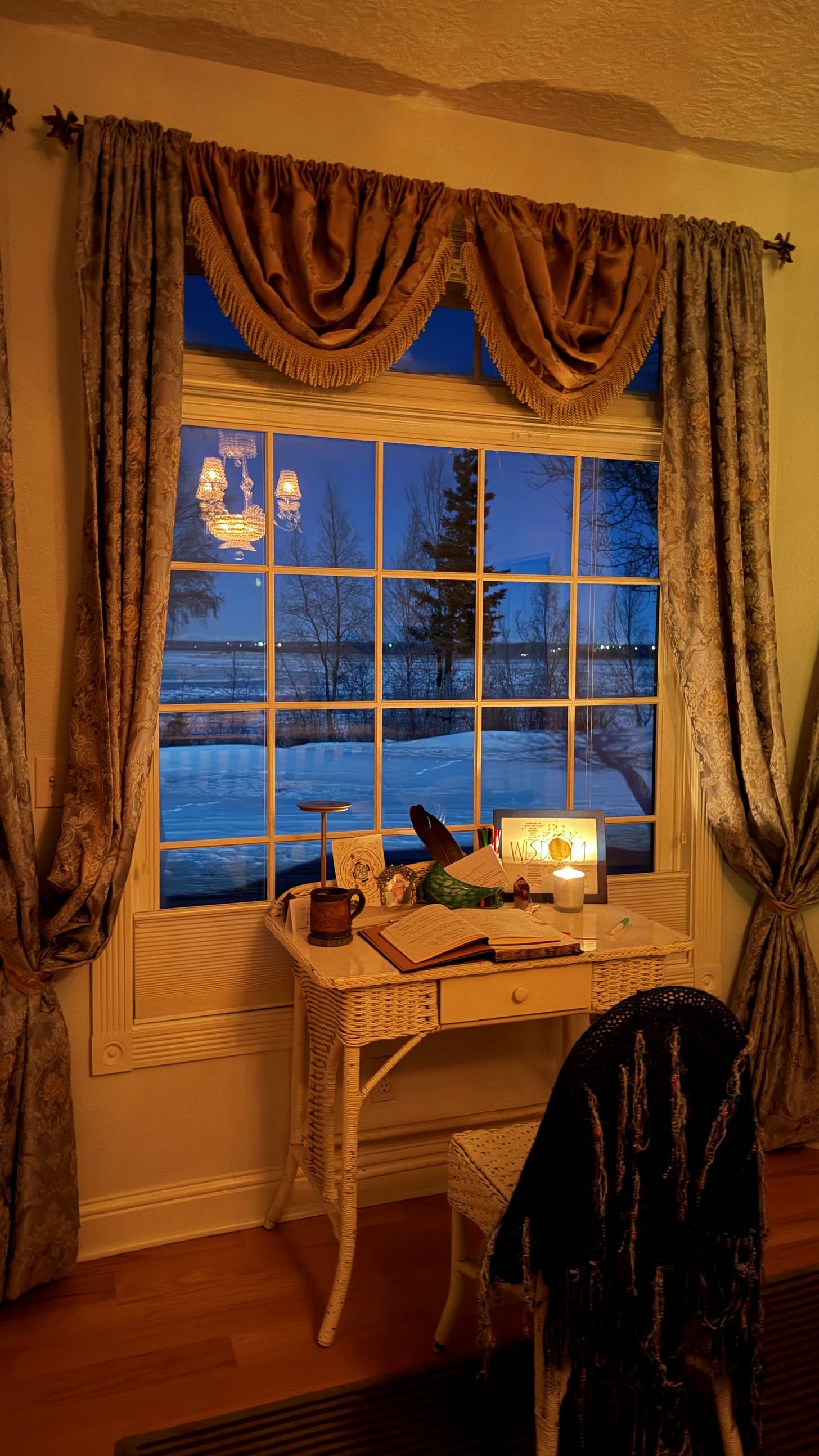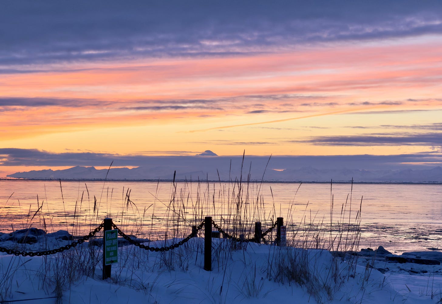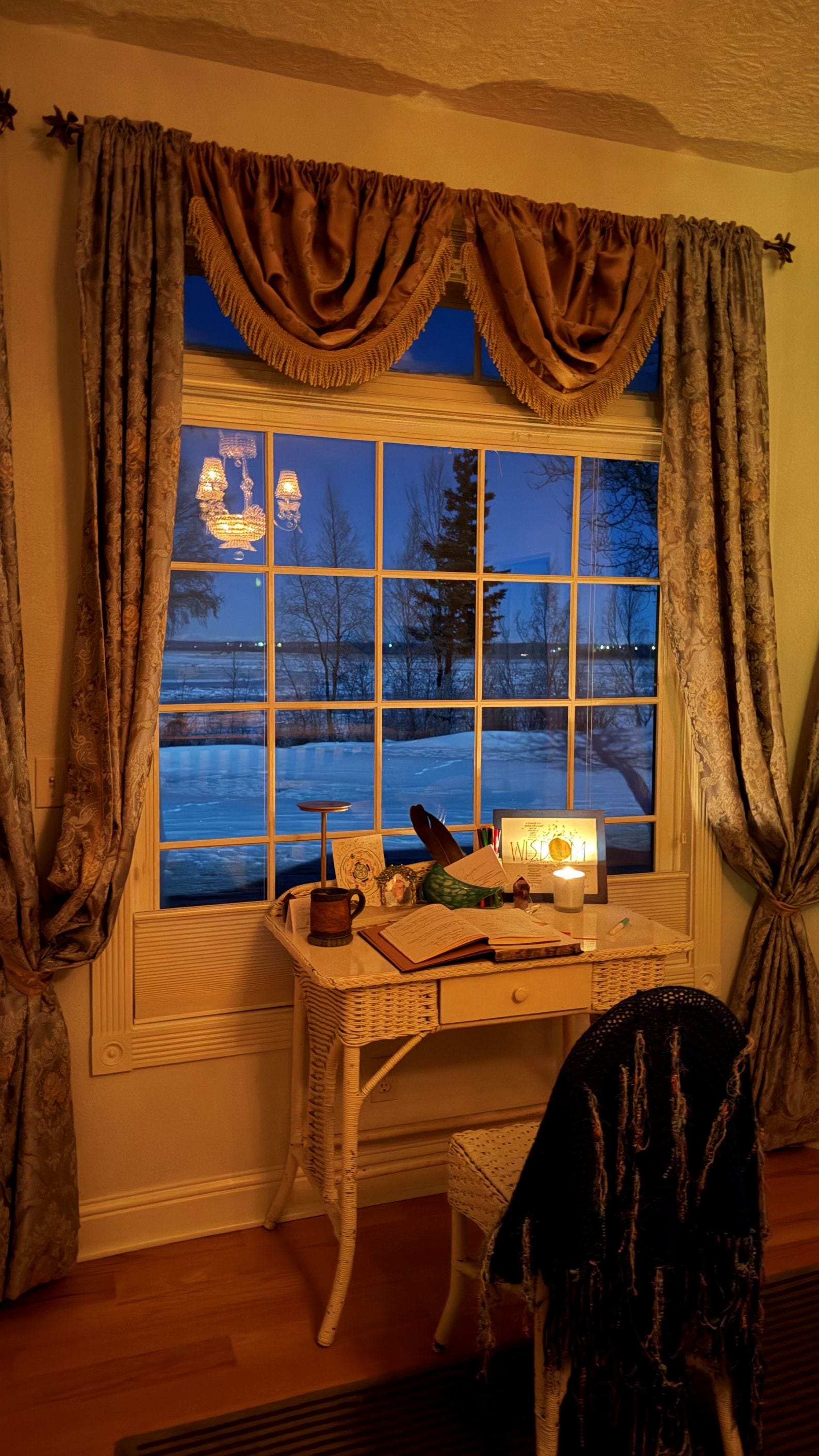 I’m writing every week this month with poet Rosemerry Wahtola Trommer’s “Writing From Rupture” group, and while listening to poems, the landscape beyond my windows captured my attention. During a twenty-minute write, inspired by “Fire” by Joy Harjo, the element of Air surprised me, rising from my viewpoint and embodied experience on a snow-flecked late afternoon in a far too cold Alaska winter.